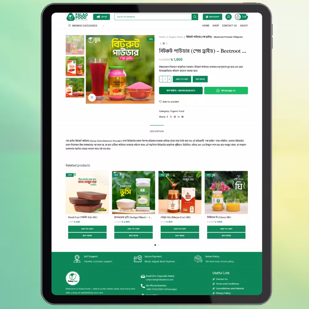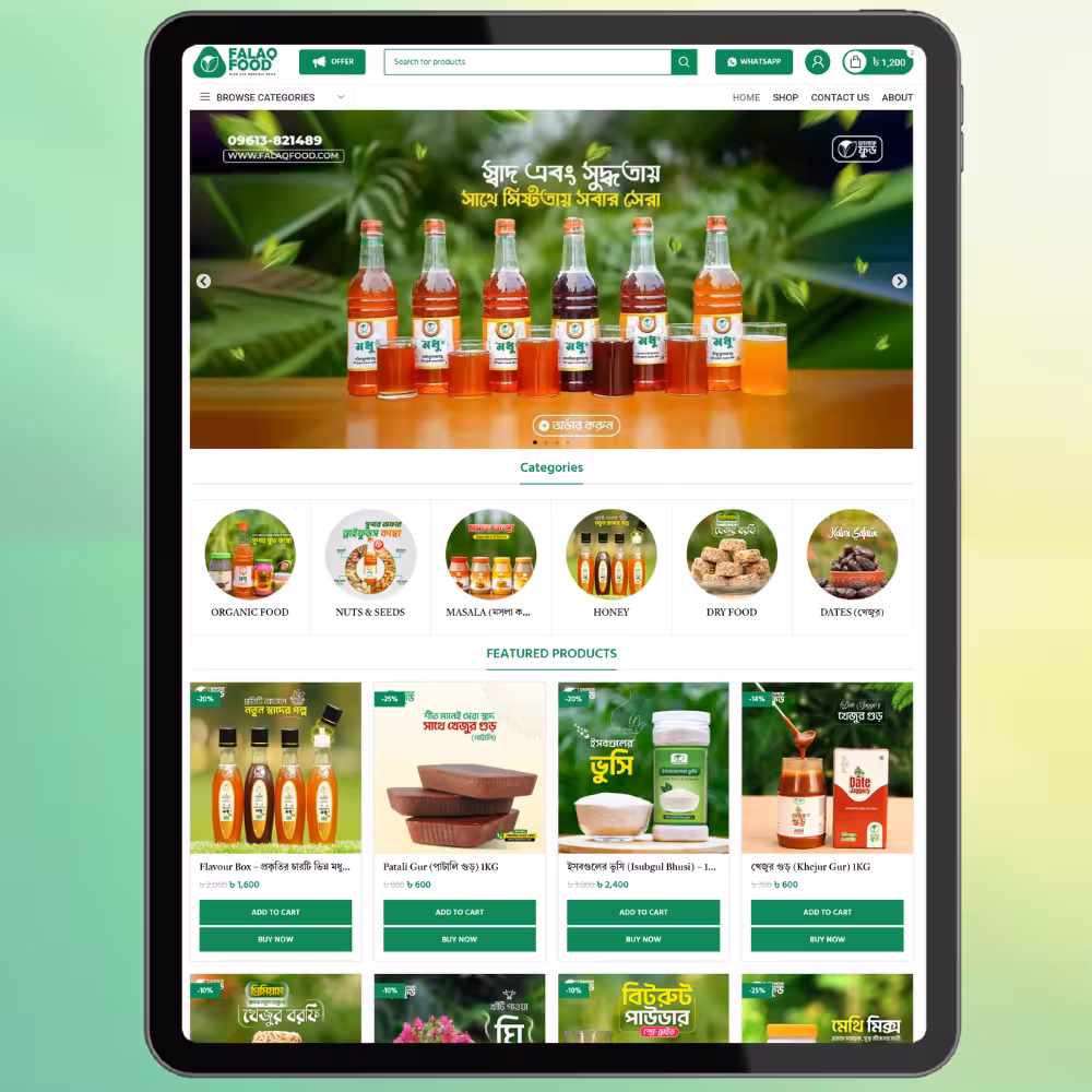 ডিজাইন ও ফাংশনালিটি অনুপ্রাণিত falaqfood.shop টাইপ আধুনিক অর্গানিক ফুড ই-কমার্স ওয়েবসাইট থেকে।