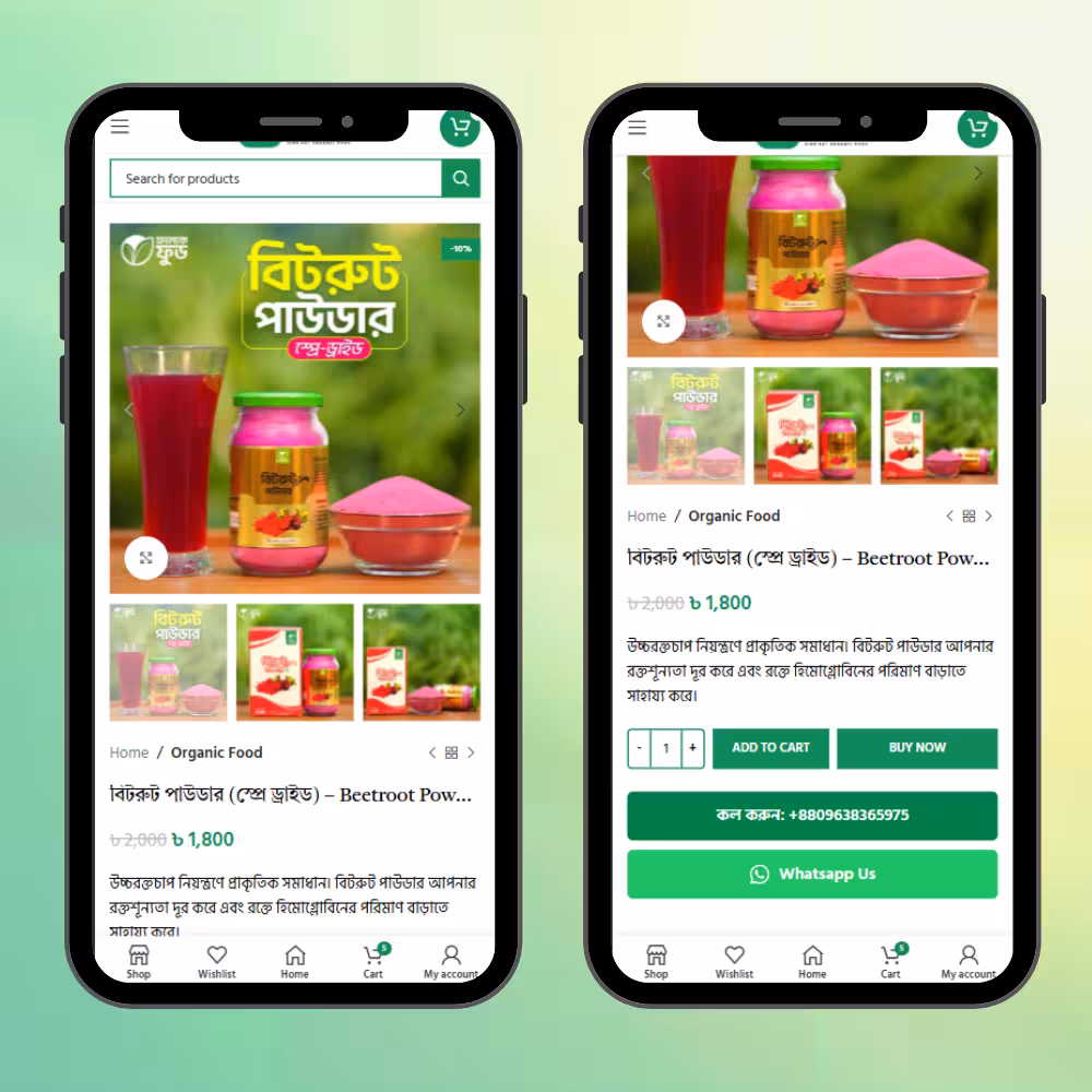 এই প্রোডাক্টটি একটি সম্পূর্ণ রেডিমেড Organic Food eCommerce Website, যা তৈরি করা হয়েছে WordPress + WooCommerce + WoodMart Theme ব্যবহার করে।